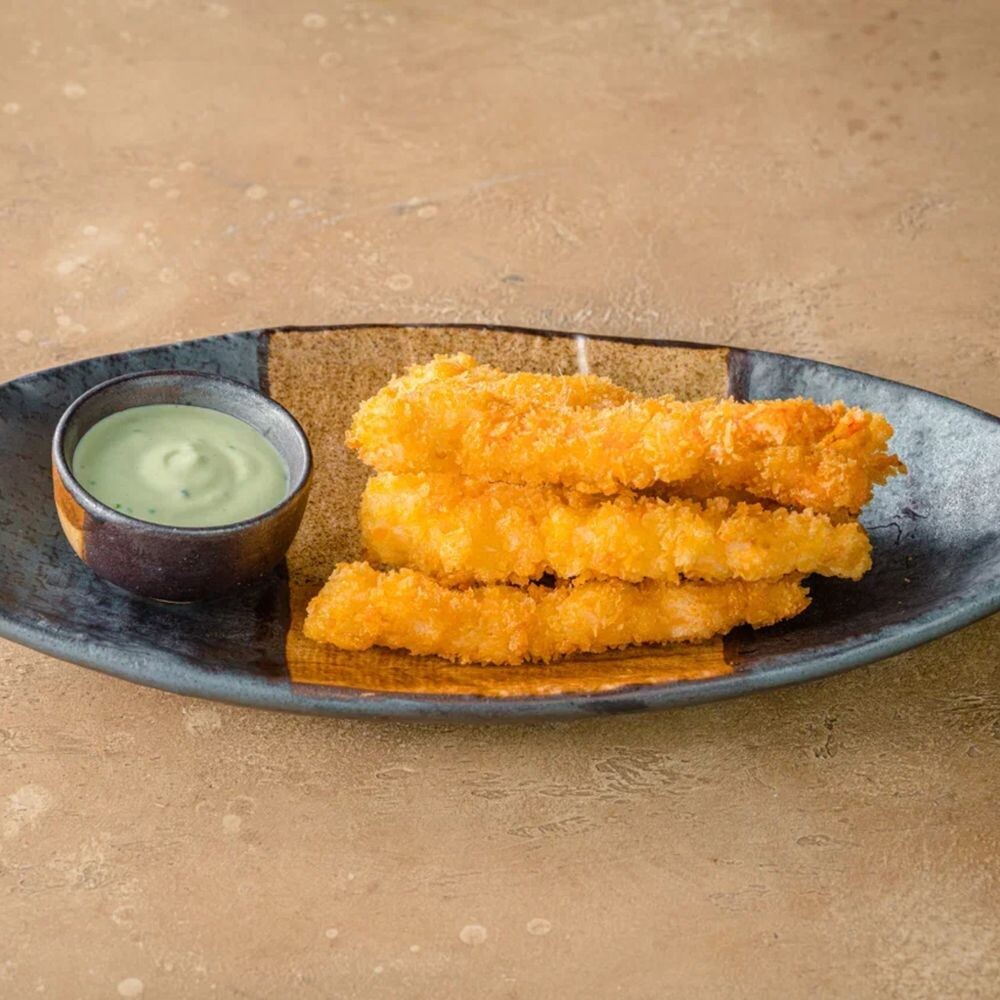 Креветки в сухарях панко, сливочный соус васаби
